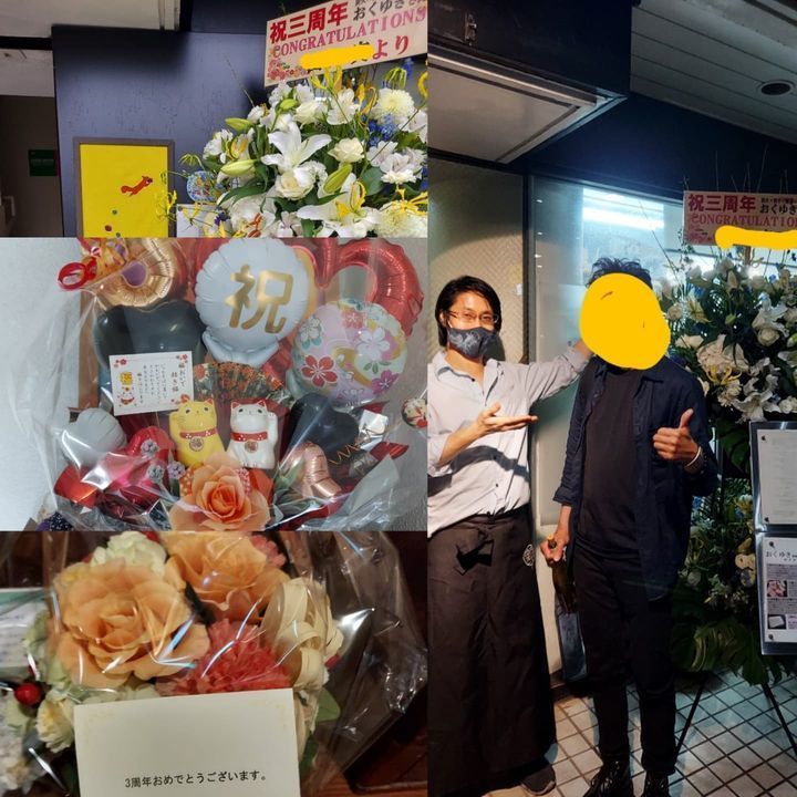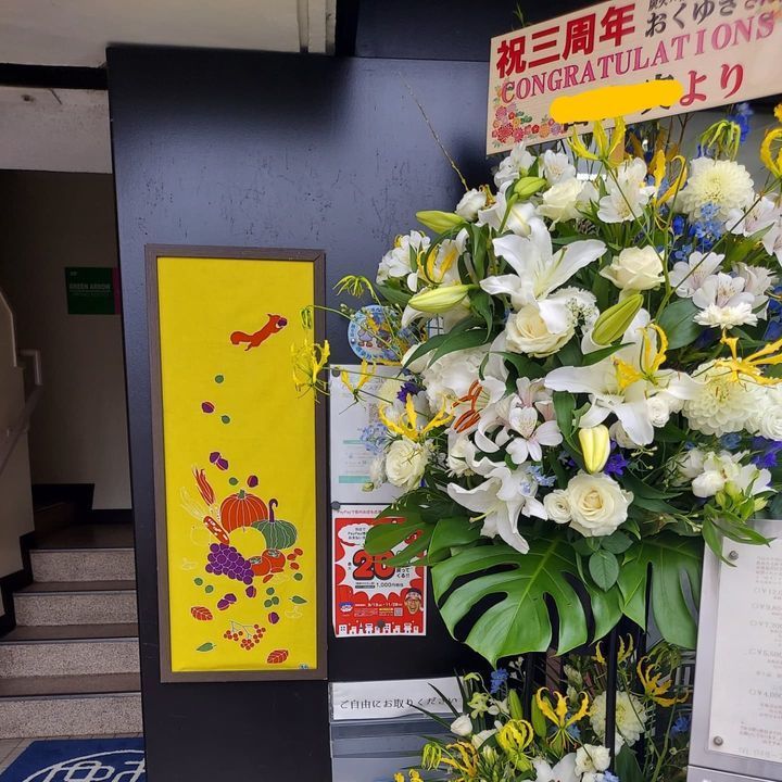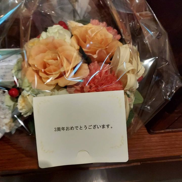 今月でおくゆき3周年てことで、常連さんからでっかいお花頂きましたー( ⊙⊙)!!