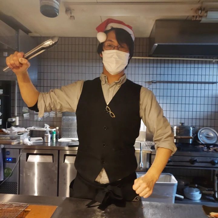 ※サンタ帽をバイトさんがかぶってくれなかったので渋々店主がかぶったら、ちょっとテンション高くなったの図